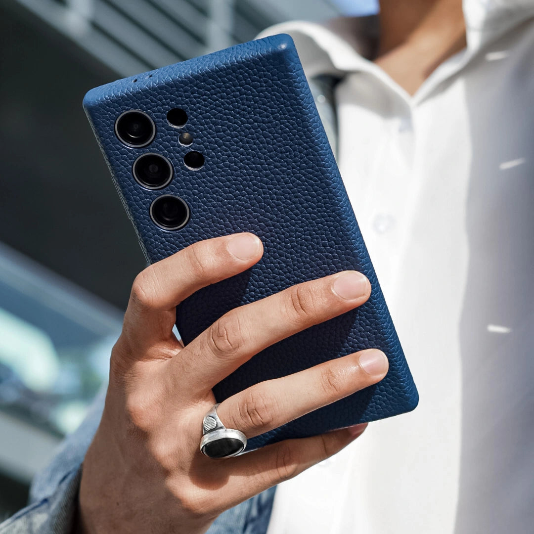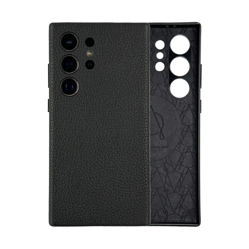 - Processed Lychee texture leather frame provides a secure non-slip grip designed for texting, gaming and selfie.