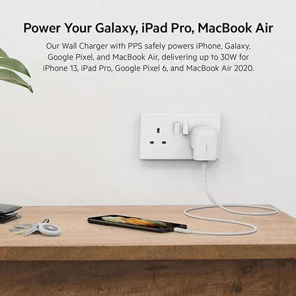 Belkin 30W USB C wall charger with PPS, Power Delivery